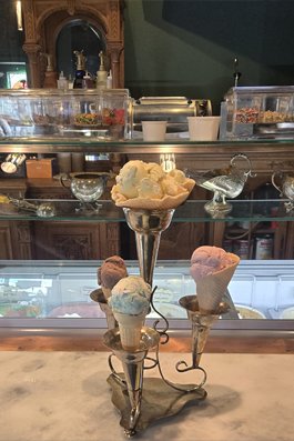 A welcoming location where desserts meet curated Gifts and Antiques, creating a unique experience beyond typical ice cream parlors.